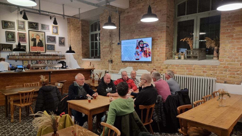 Im Anschluss wurde bei Flammkuchen ein wenig über Sport und Bier gesprochen. Insgesamt ein wunderbarer Abend. Demnächst werden die Termine für weitere Stammtische bekannt gegeben, und auch 2026 werden wir wieder mit einer kleinen Führung bei unserem Partner dabei sein.